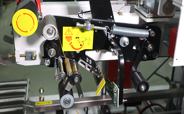 2.采用進(jìn)口封箱機(jī)配件新型專利貼帶器,不用鼓風(fēng)機(jī)吹挺膠帶,利用專利壓片裝置,使膠帶挺立不會(huì)彎下而造成不能粘貼,封箱包裝便捷。