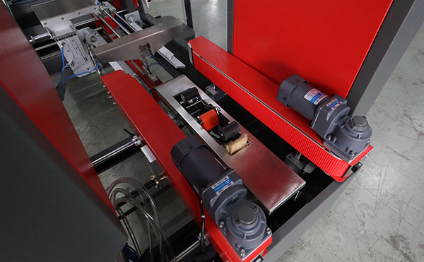 緊接著,紙箱被送入封箱部位。封箱機(jī)廠家表示這里是整個(gè)流程的核心,驅(qū)動(dòng)輪會(huì)平穩(wěn)地將紙箱壓向兩側(cè)的貼帶器,膠帶在瞬間被均勻地粘貼在箱蓋的中縫上,并同時(shí)完成切斷。整個(gè)過(guò)程無(wú)需人工干預(yù),一氣呵成。